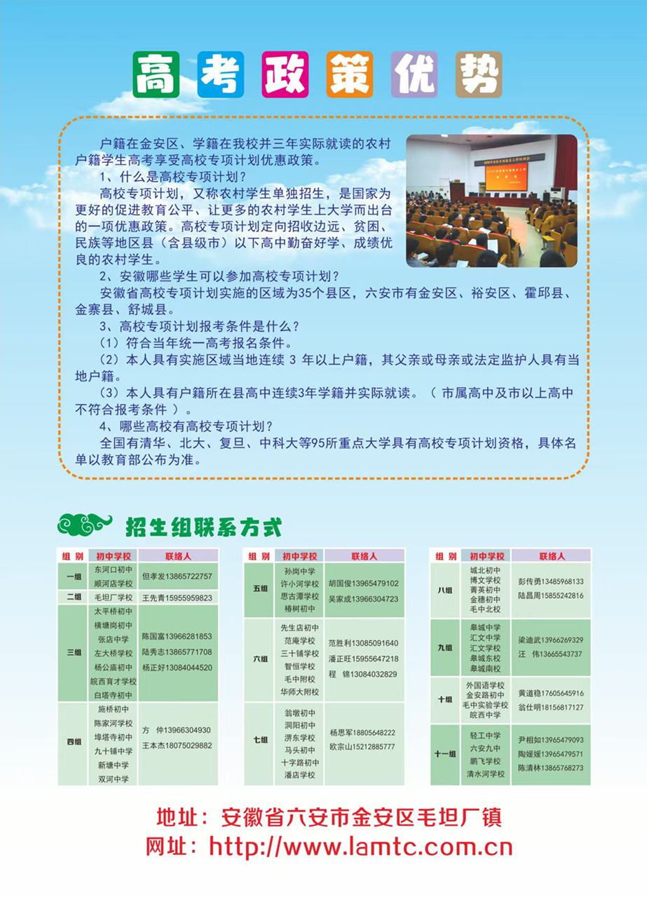 六安市毛坦厂中学2025年高一招生简章
