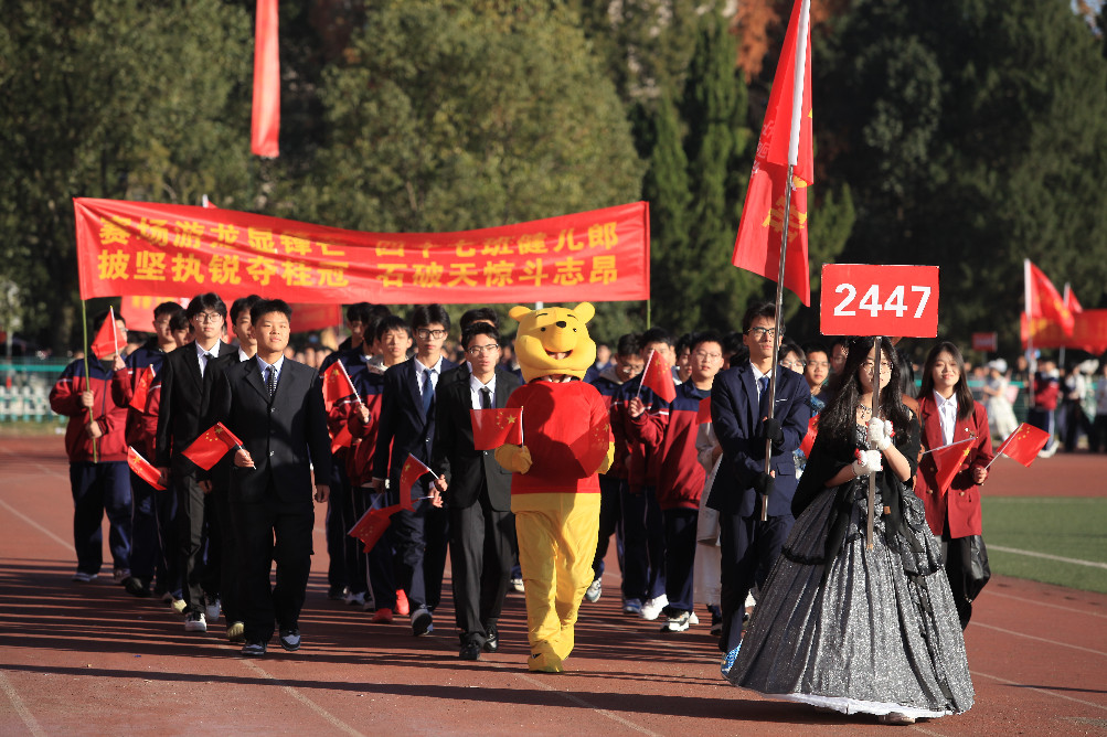 开幕式在激昂的《运动员进行曲》中启动,国旗方阵、校旗方阵、校训方阵、会徽方阵、鲜花方阵、气球方阵、彩旗方阵步伐铿锵、意气风发,各班级方阵创意十足、点燃全场,裁判员方阵精神抖擞、器宇轩昂。入场完毕,全场肃立,奏唱中华人民共和国国歌,庄严的歌声回荡校园,凝聚起拼搏奋进的磅礴力量。